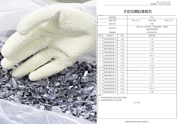 手套經(jīng)過特殊工藝處理,通過驗證將手套放置氮氣柜當(dāng)中80H,手套接觸產(chǎn)品無任何氧化情況,經(jīng)權(quán)威機構(gòu)檢測氯元素及硫元素完全符合接觸電池片標準,且不會在電池片上面留下任何指印。
